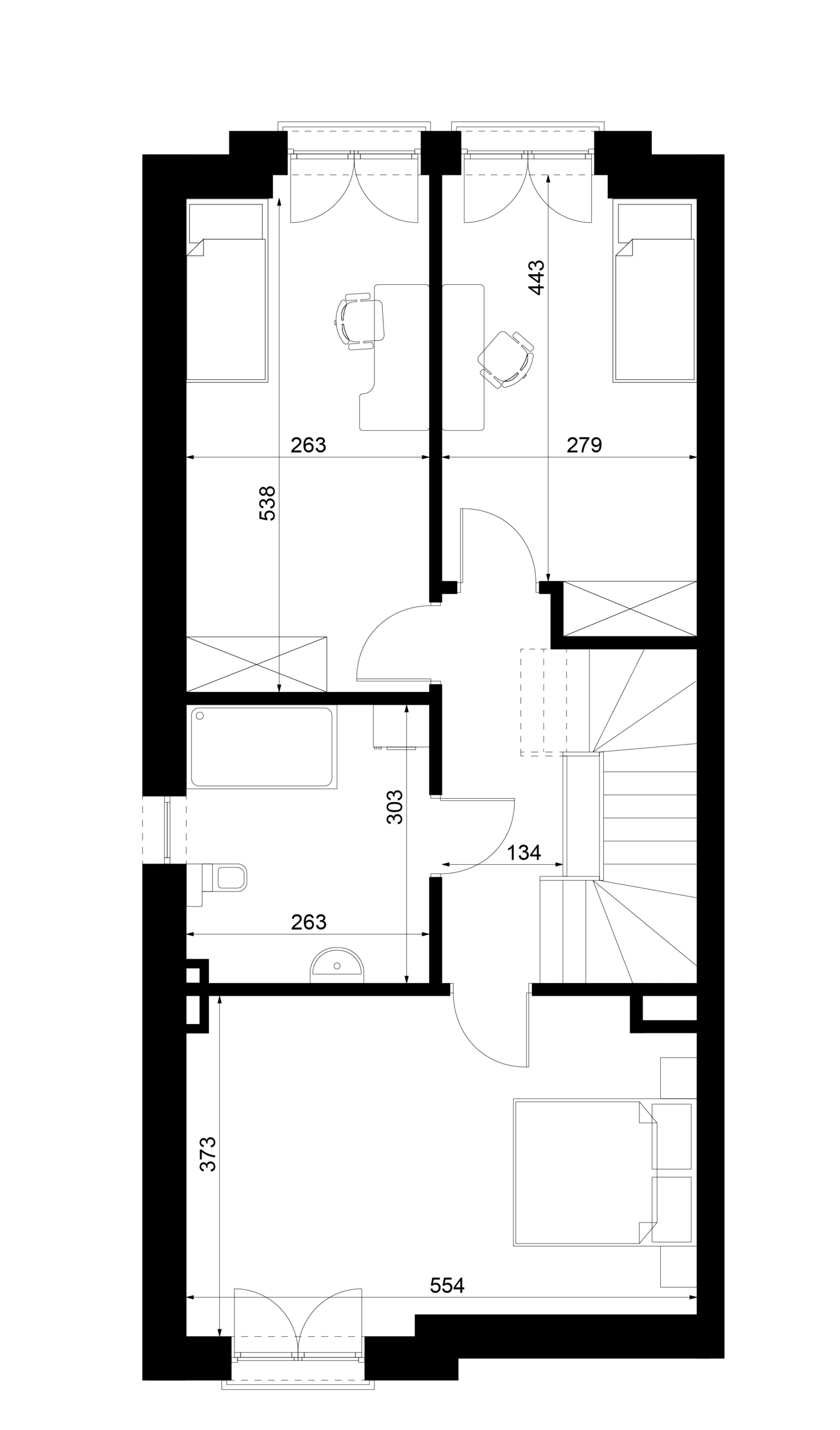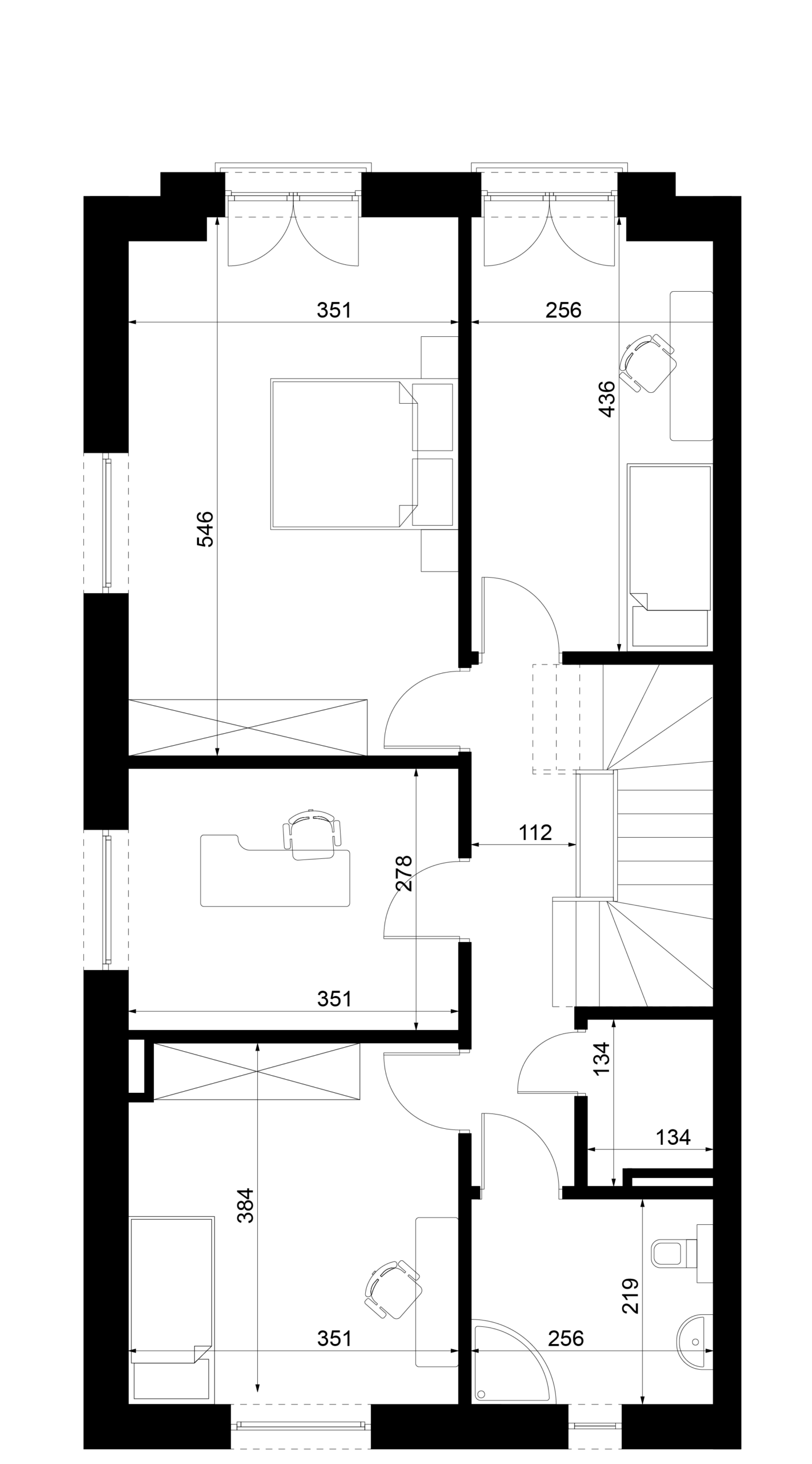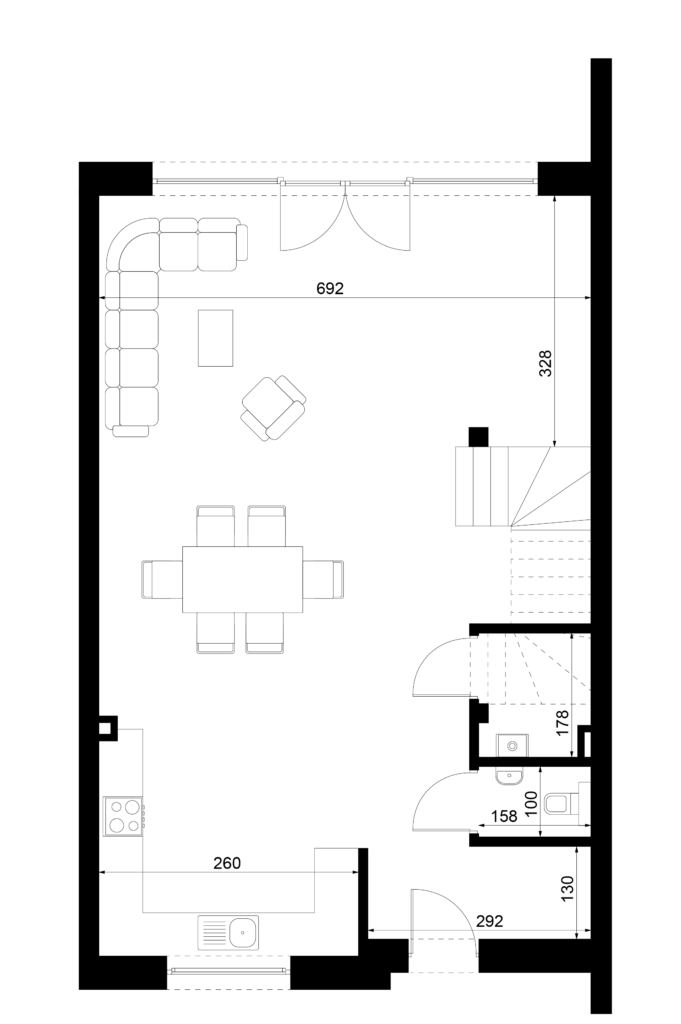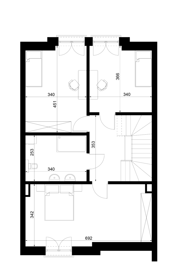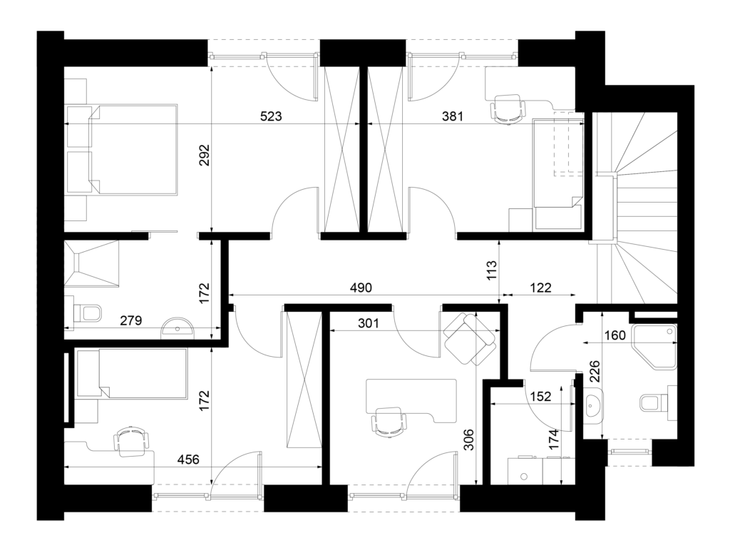 W Scandinavii nie oferujemy sztywnego, zamkniętego układu wnętrz, ale zapewniamy realną możliwość zaprojektowania domu pod konkretne potrzeby mieszkańców. Zarówno strefa dzienna typu open space, jak i układ pomieszczeń na piętrze mogą być swobodnie kształtowane: zmieniane są funkcje pokoi, lokalizacja ścian działowych, wielkość i proporcje przestrzeni, a nawet rozmieszczenie i wymiary przeszkleń. Stałym elementem pozostają jedynie ściany zewnętrzne, natomiast wnętrze może zostać zaprojektowane od podstaw pod indywidualny styl życia – od otwartej, loftowej przestrzeni po bardziej klasyczny, podzielony układ.Rozwiń ∨